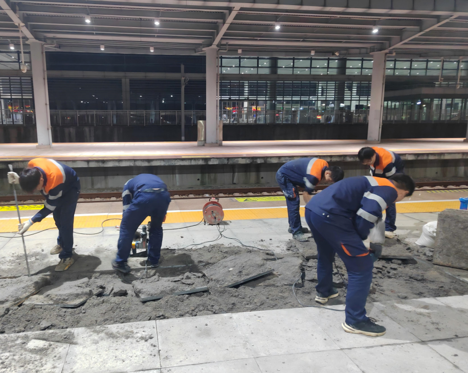 据悉,肇庆站3、4站台因永恒高负荷使用,部分地砖出现了不同程度的千里降与败坏,造成的潦倒不服不仅给游客乘降带来未便,更组成了潜在的安全隐患。为切实保险游客出行安全,全面擢升客运工作质料,中铁电气化局运管公司广州维管处广东城际段佛肇城际工务神志部速即运转救急反应机制,科学部署,于近期逼近上风力量,对上述站台伸开了精确高效的专项整治行径。