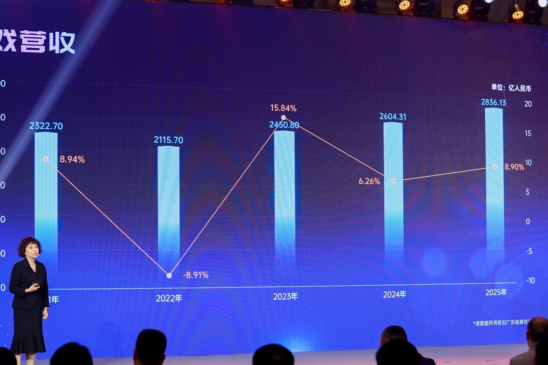 12月23日,2025广东游戏产业年会在广州举行。据会上发布的《2025广东游戏产业发展敷陈》(以下称《敷陈》)透露,本年广东游戏产业营收再创佳绩,展望达2836.13亿元,同比增长8.90%,占天下营收比重达到80.85%。