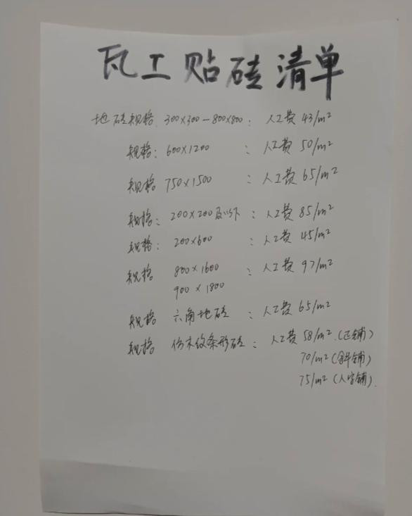 800*800的瓷砖还能接纳,如果是装大尺寸的瓷砖,价钱会径直翻倍,工费也翻倍。