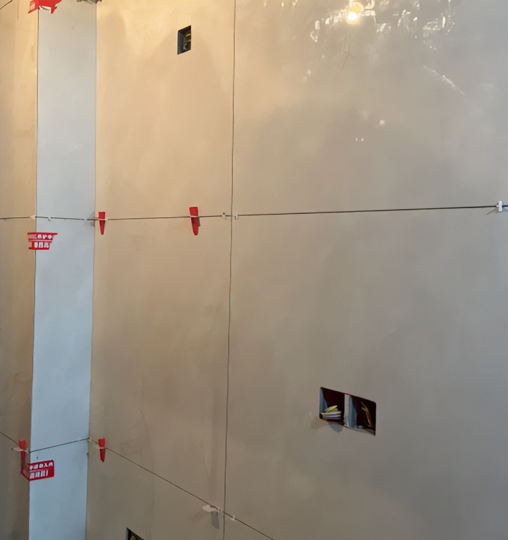 地砖尺寸比拟大,念念要更好的固定在墙壁中,瓷砖胶是不行虚浮的装修材料!